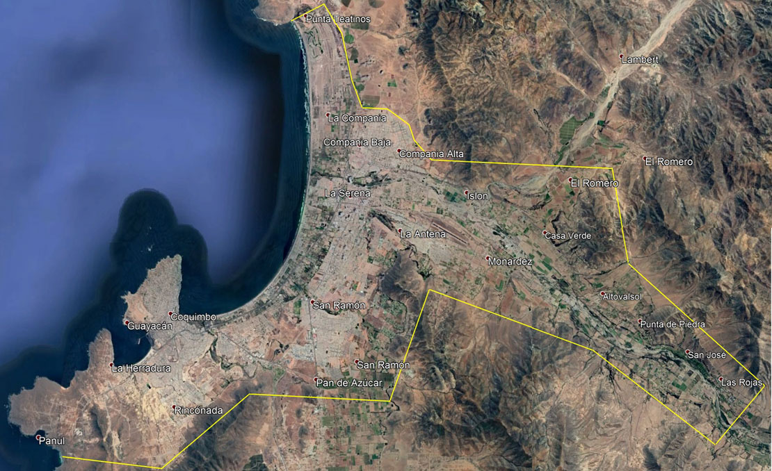 El área de cobertura para despacho a domicilio esta indicado en el plano de cobertura, que comprende desde Punta de Teatinos por la Zona Norte , El Panul por la zona Sur hasta el sector de las Rojas por la zona Oriente