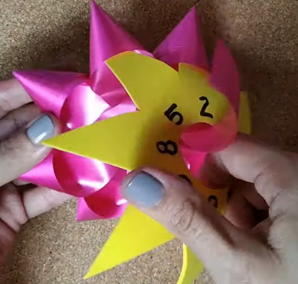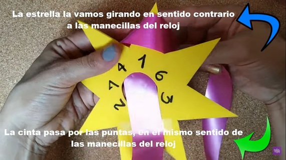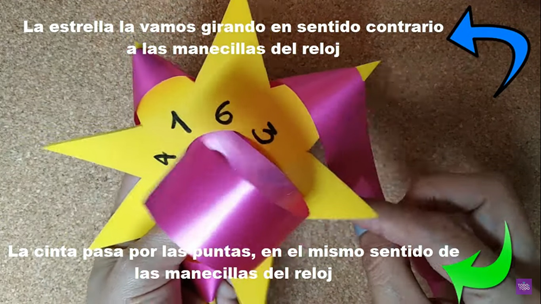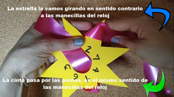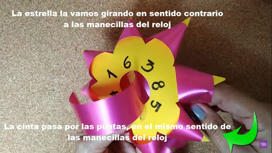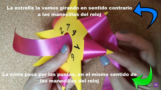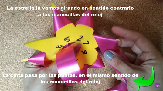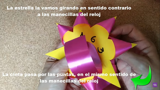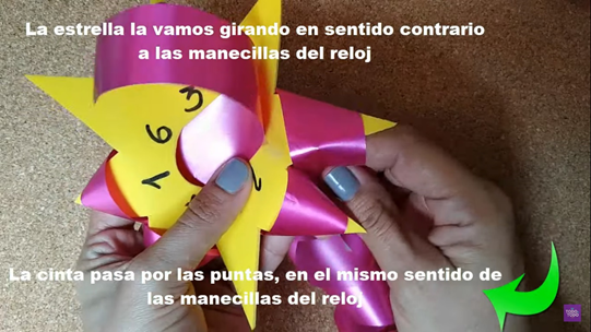 - 10.- Finalmente, se procede a sacar las puntas del moño estrella realizado