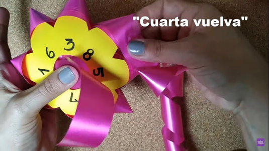 - 9.- Formar la argolla central con el extremo de cinta, tal como se observa en la imagen siguiente